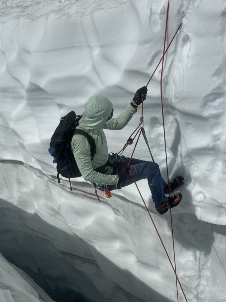 If you’re looking for mentorship on not just crevasse rescue, but glacier mountaineering skills in general, we’d recommend a Glacier Mountaineering Course or Glaciated Ski Mountaineering Course if you’re a skier or rider. If you’re pretty dialed on the basics and are just looking for the latest and greatest of crevasse rescue, then take a Crevasse Rescue Course. Regardless, get out and practice with your team before entering terrain where you could need crevasse rescue. Even if you feel dialed, make sure the folks you’re traveling with are too.